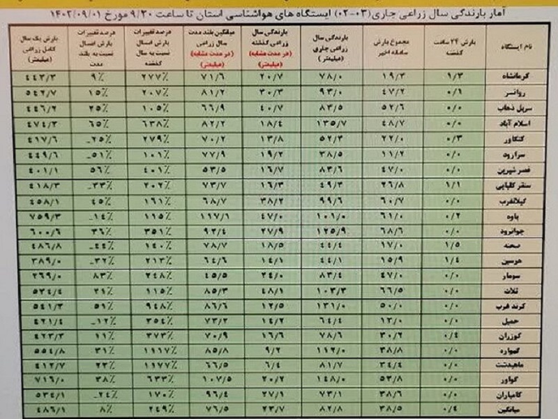 قاسمی اضافه کرد: سرارود با ۳۹، صحنه و جوانرود با ۴۴ و سنقر با ۴۹ میلی متر بارندگی نیز به ترتیب دارای کمترین میزان بارندگی در بین ایستگاههای استان در این مدت بودند.